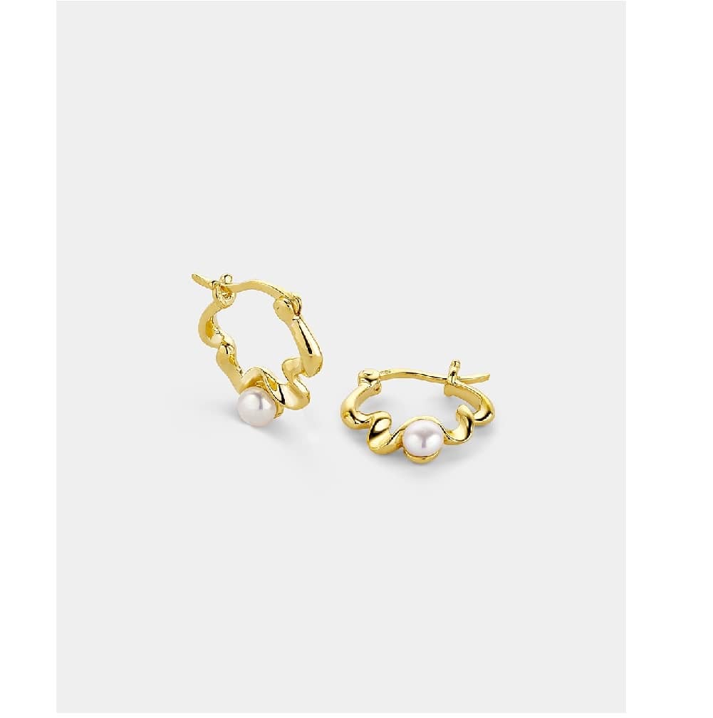 Vogue Κρίκοι κυματιστοί με μαργαριτάρι από επιχρυσωμένο Ασήμι 925° 20172546241