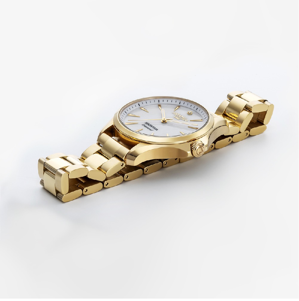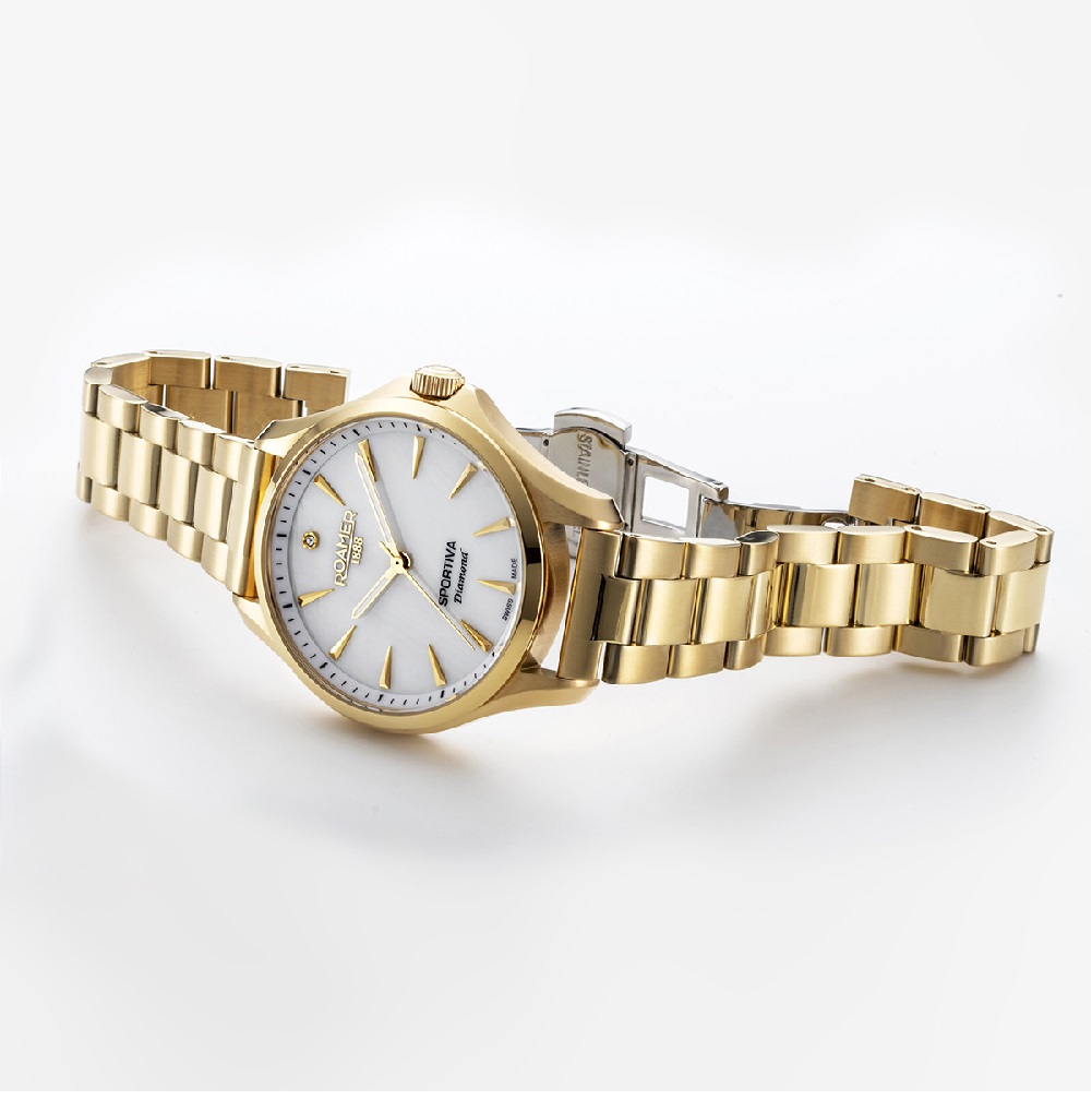 Επιπλέον Χαρακτηριστικά/Λειτουργίες: GENUINE DIAMONDS, White mop dial, leather strap