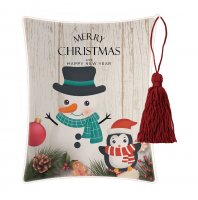 Επιτραπέζια διακοσμητική εικόνα με θέμα Marry Christmas Χιονάνθρωπο και Πιγκουίνο με λευκή ξύλινη πλάτη.