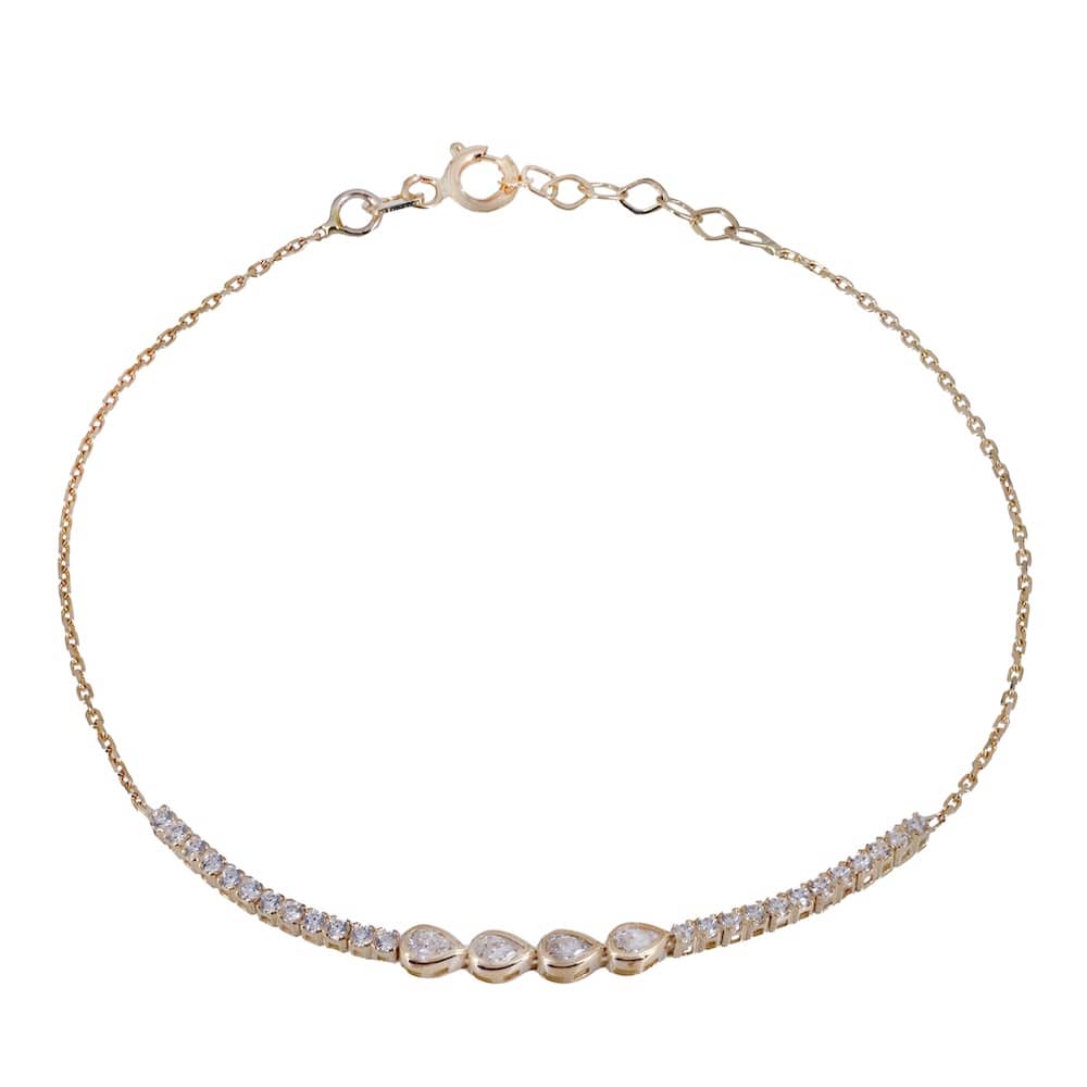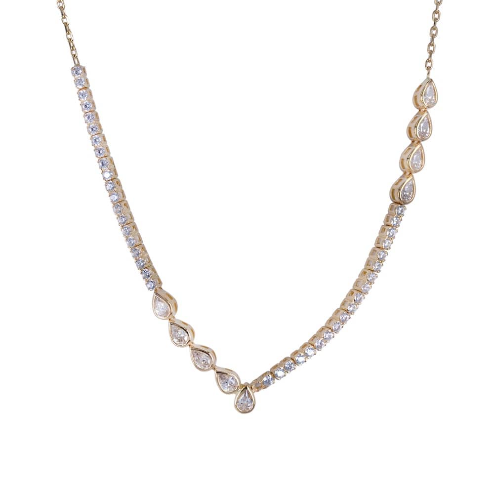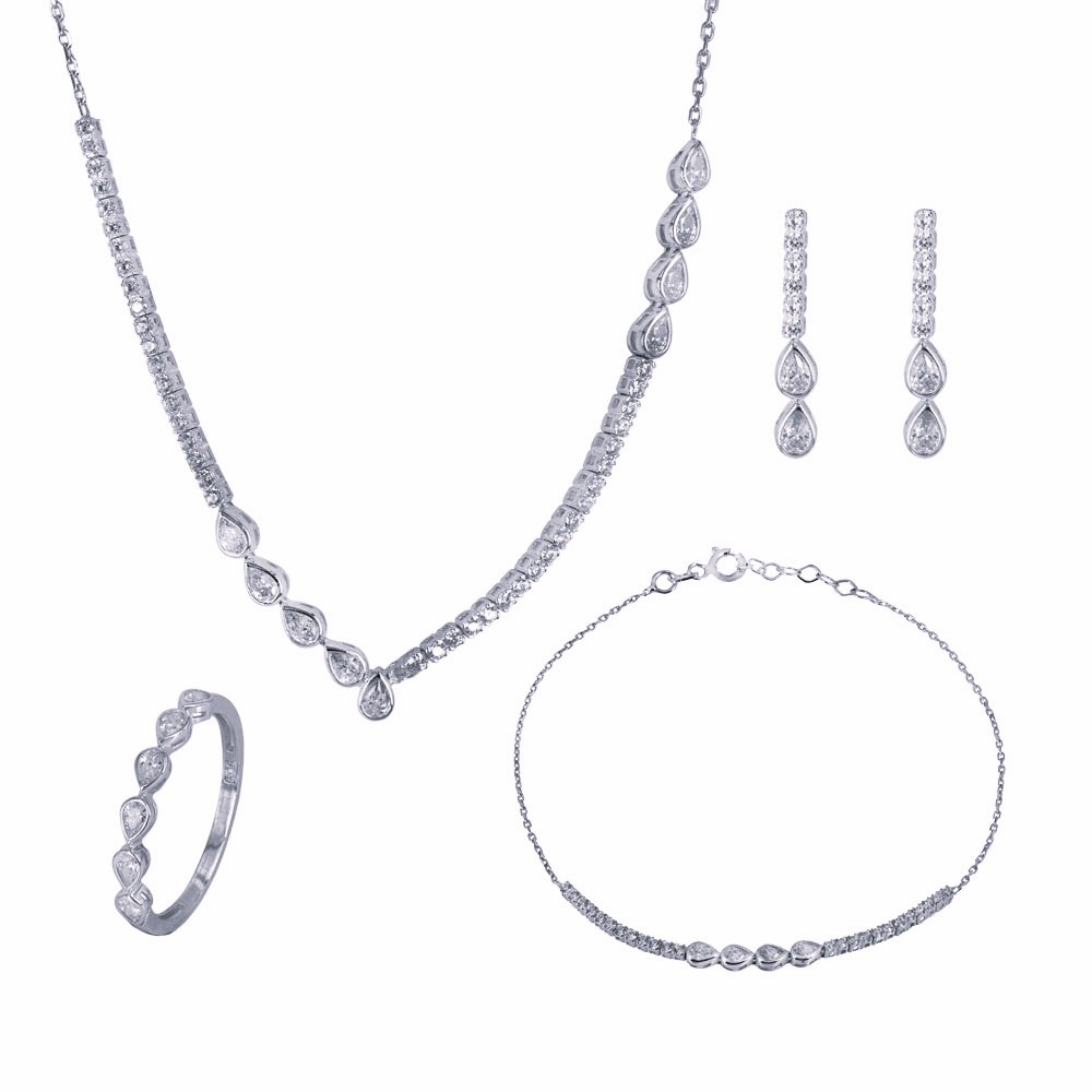 Σετ χρυσό 14 Καρατίων,  με ιδιαίτερο μοντέρνο σχέδιο από μονή σειρά με ζιργκόν Swarovski η οποία συνεχίζει με σειρά πετρών σε σχέδιο δάκρυ ζιργκόν Swarovski.