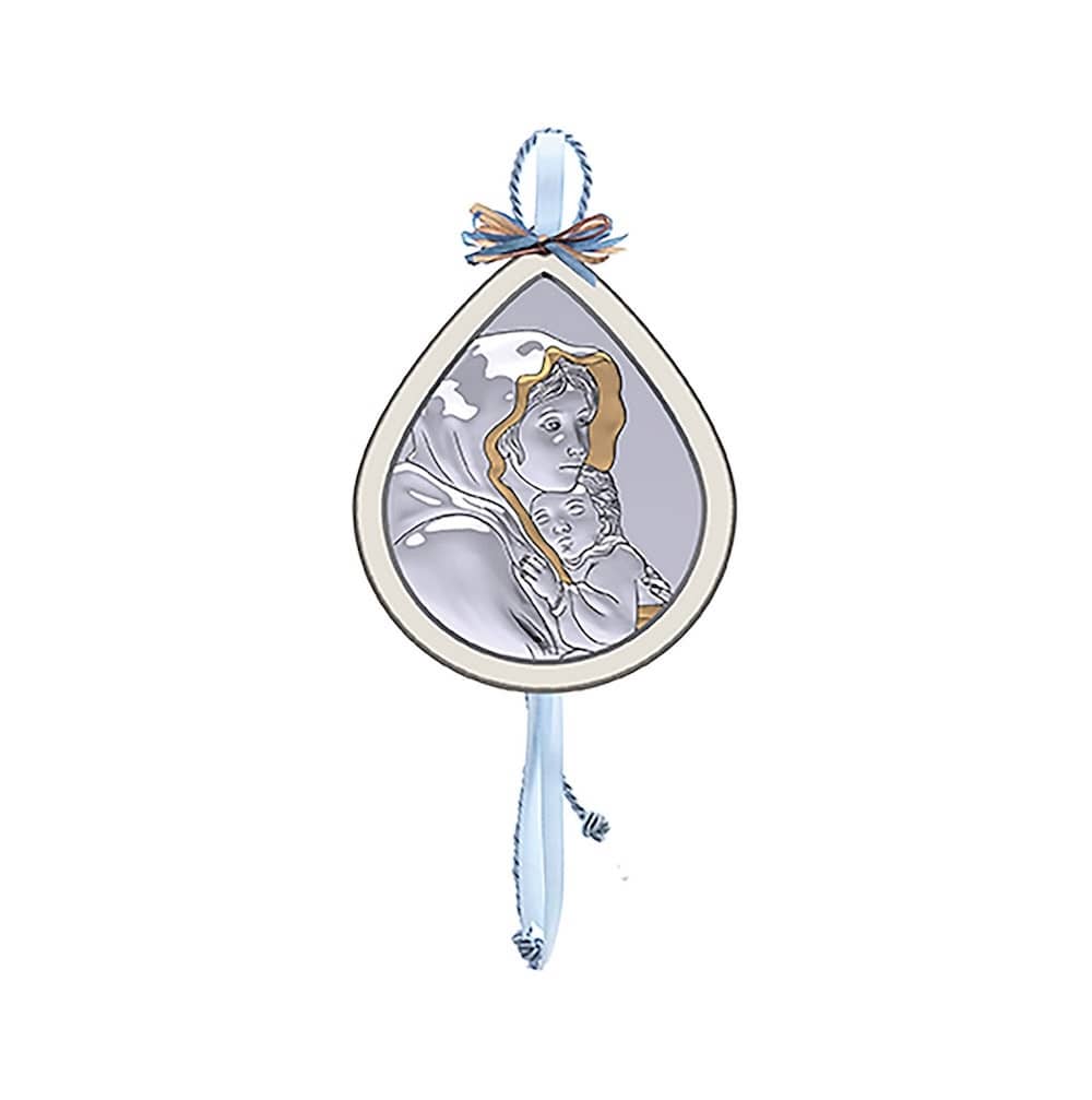 Ασημένια παιδική εικόνα κούνιας με την Ευλογημένη Μητέρα.