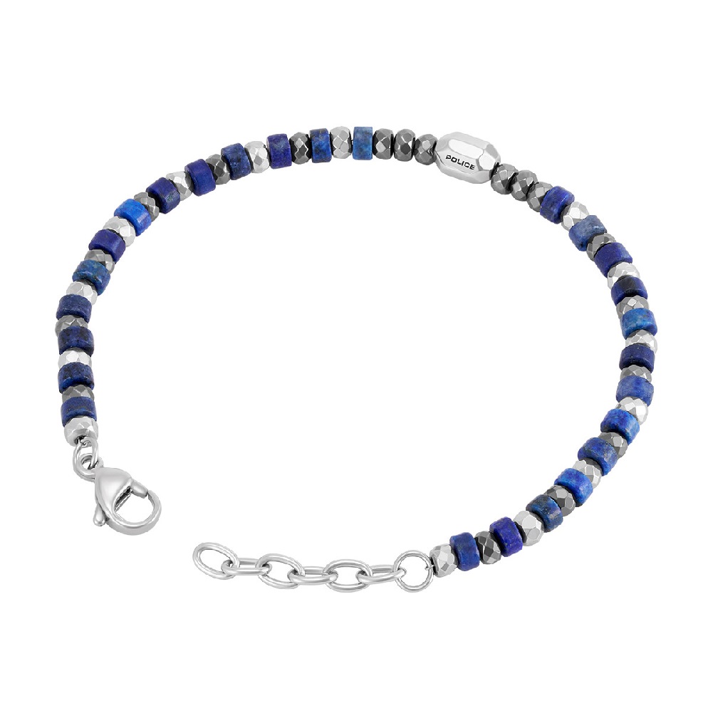 Ανδρικό βραχιόλι Police από ανοξείδωτο ατσάλι με πέτρες σε ασημί / ανθρακί / μπλε χρώμα.