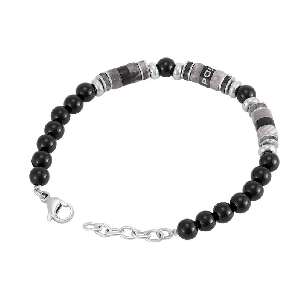 Ανδρικό βραχιόλι Police από ανοξείδωτο ατσάλι σε ασημί χρώμα και πέτρες σε αποχρώσεις μαύρο / γκρι.