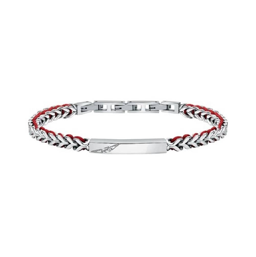 Ανδρικό βραχιόλι Sector, από λευκό ασημί ανοξείδωτο ατσάλι και κόκκινο νάυλον κορδόνι.