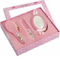Ασημένιο παιδικό σετ 925 με χτένα, βούρτσα  και εικόνα κούνιας Παναγία και Χριστός.