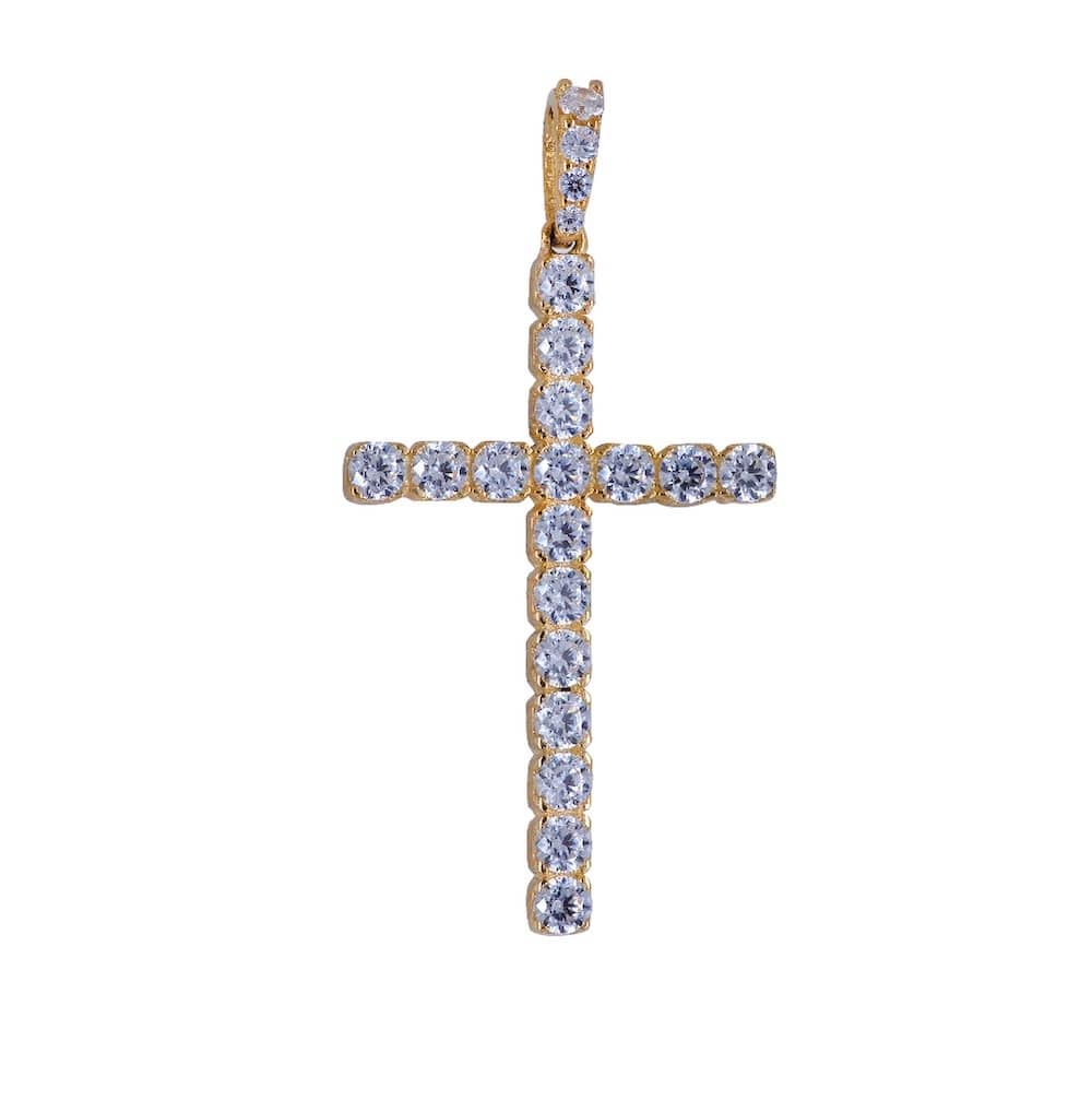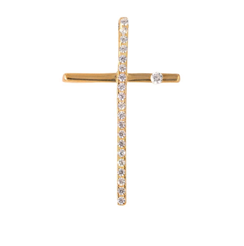 Χρυσός σταυρός 9 Καρατίων, γυναικείος, με λουστρέ φινίρισμα και πέτρα ζιργκόν Swarovski®.