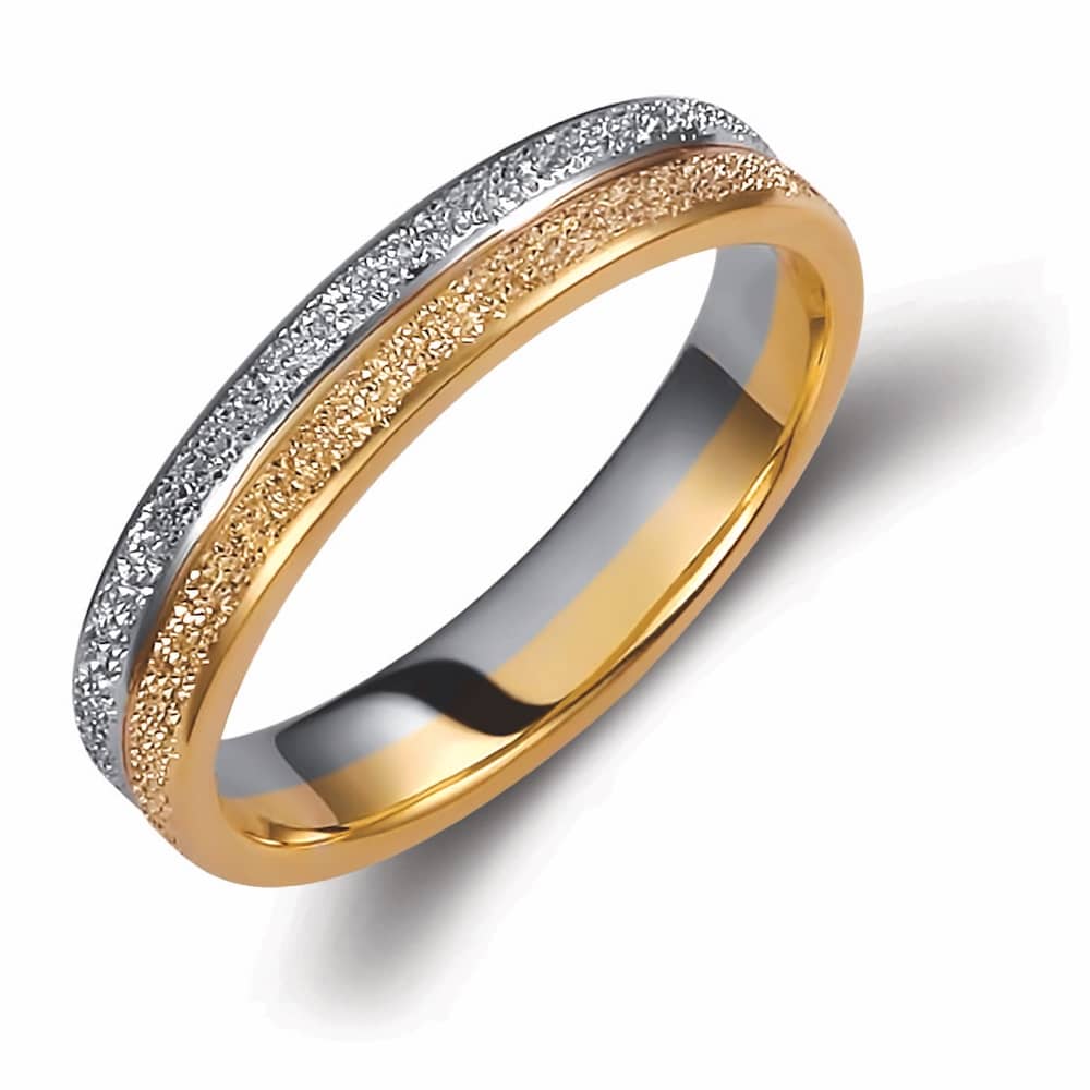 Ασημένια βέρα γάμου και αρραβώνα Valauro 925° με πλάτος 4mm, δίχρωμη με διαμανταριστό φινίρισμα.