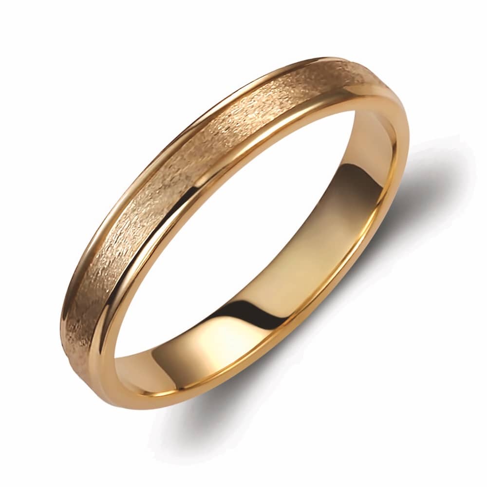 Ασημένια βέρα γάμου και αρραβώνα Valauro 925° με κίτρινο επιχρύσωμα, πλάτος 3.5mm, λουστρέ στις άκρες και σαγρέ φινίρισμα στη μέση.