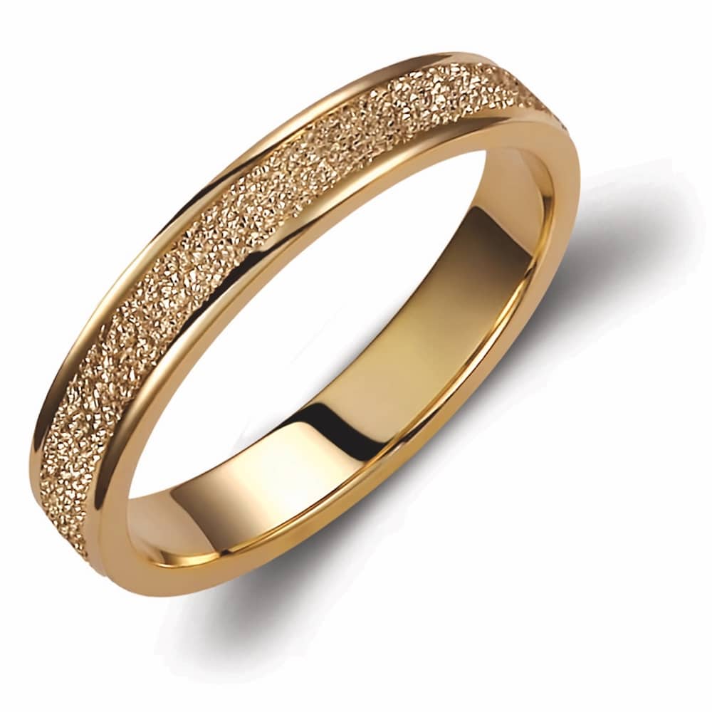Ασημένια βέρα γάμου και αρραβώνα Valauro 925° με κίτρινο επιχρύσωμα, πλάτος 3.5mm, λουστρέ στις άκρες και διαμανταριστό φινίρισμα στη μέση.