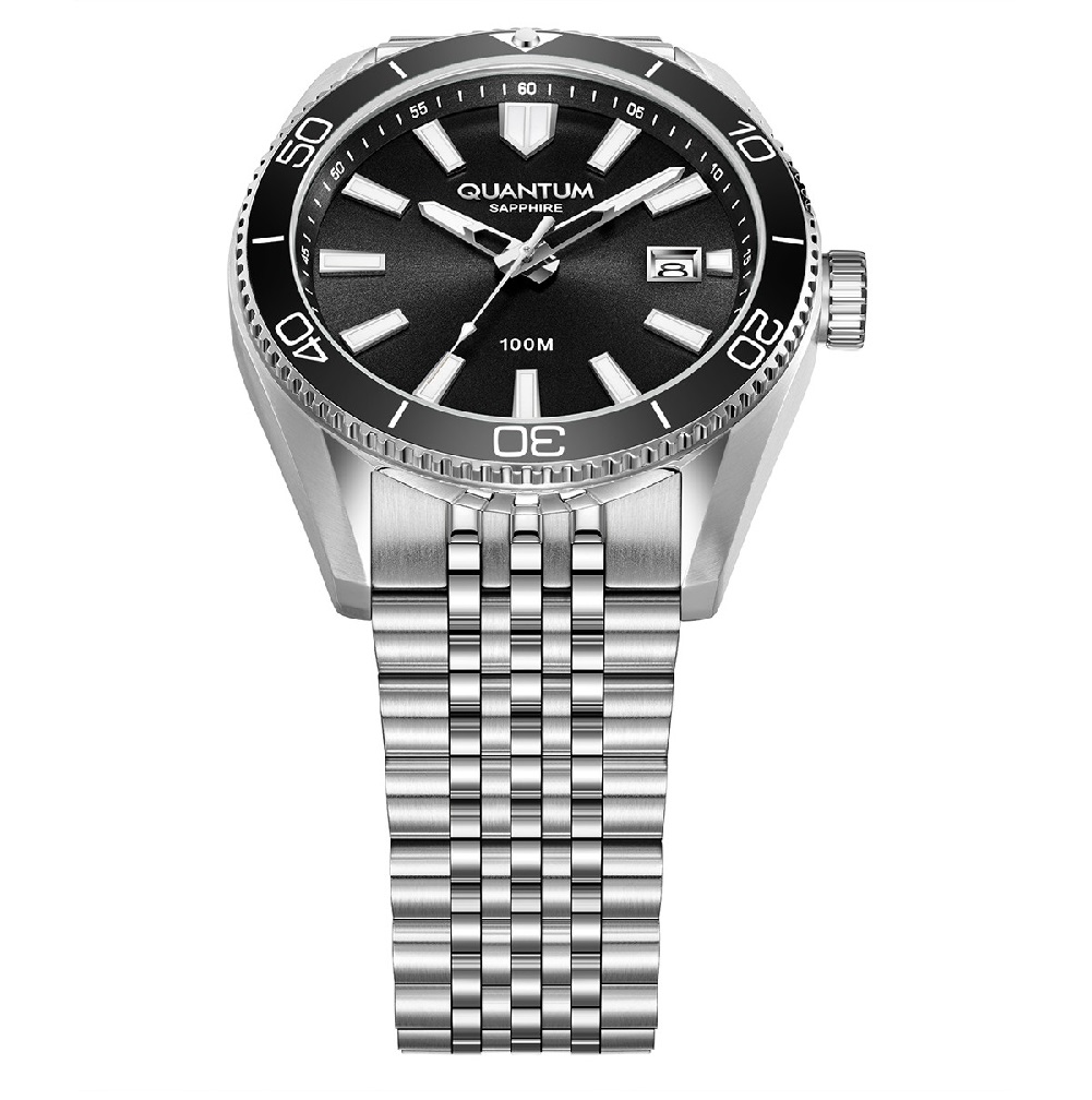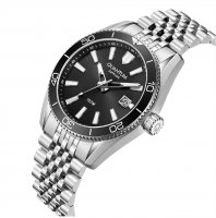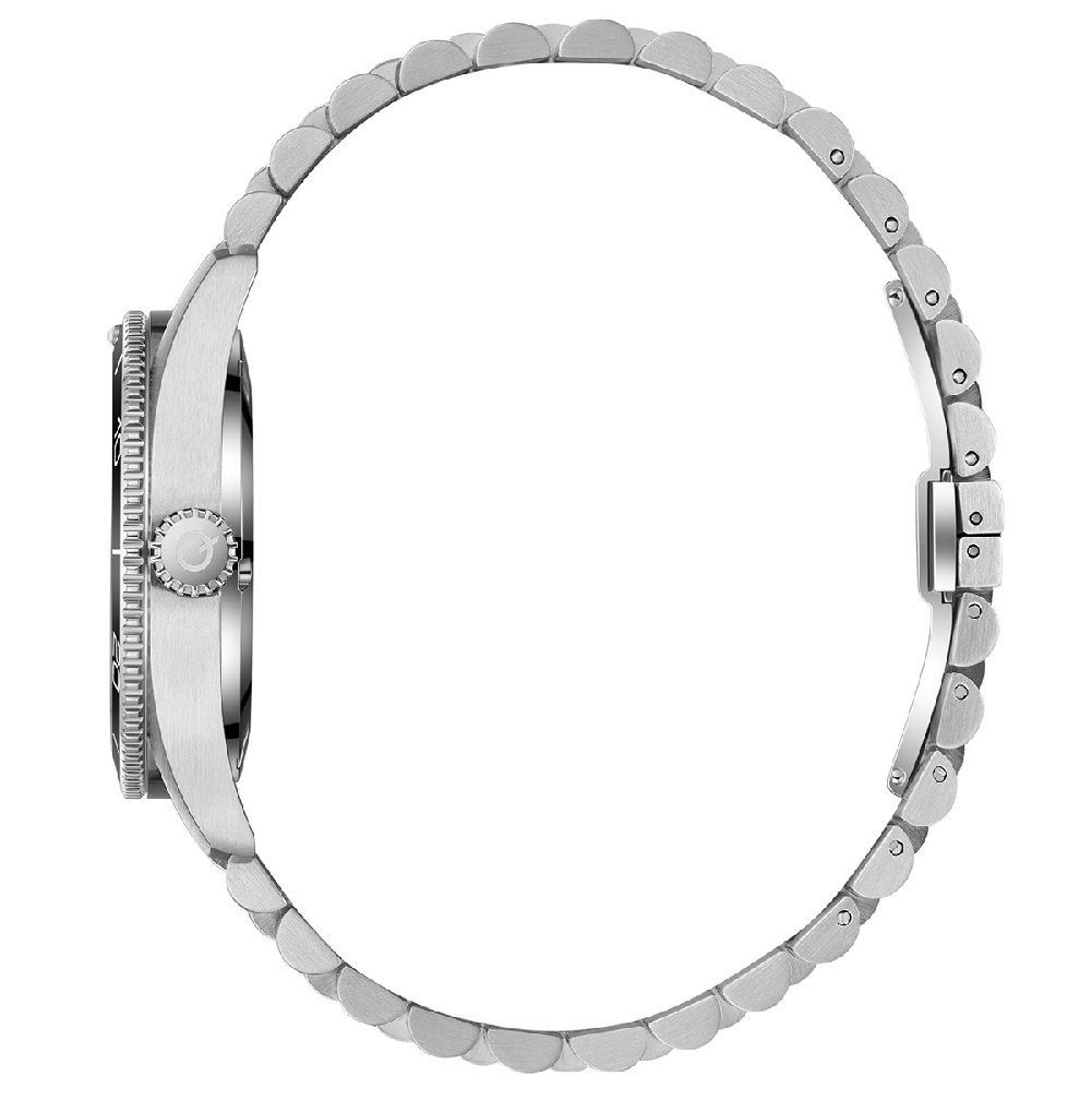 Κάσα: Ασημί ανοξείδωτο ατσάλι με μαύρη στεφάνη