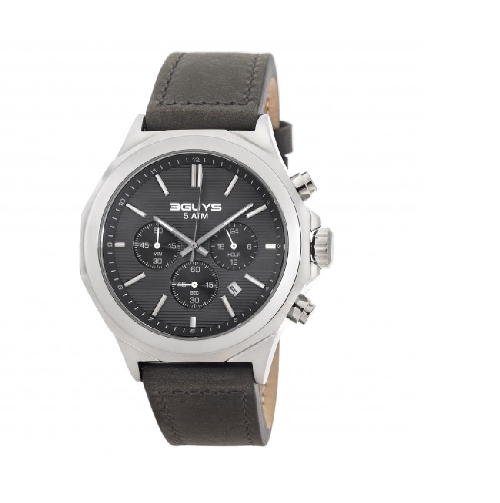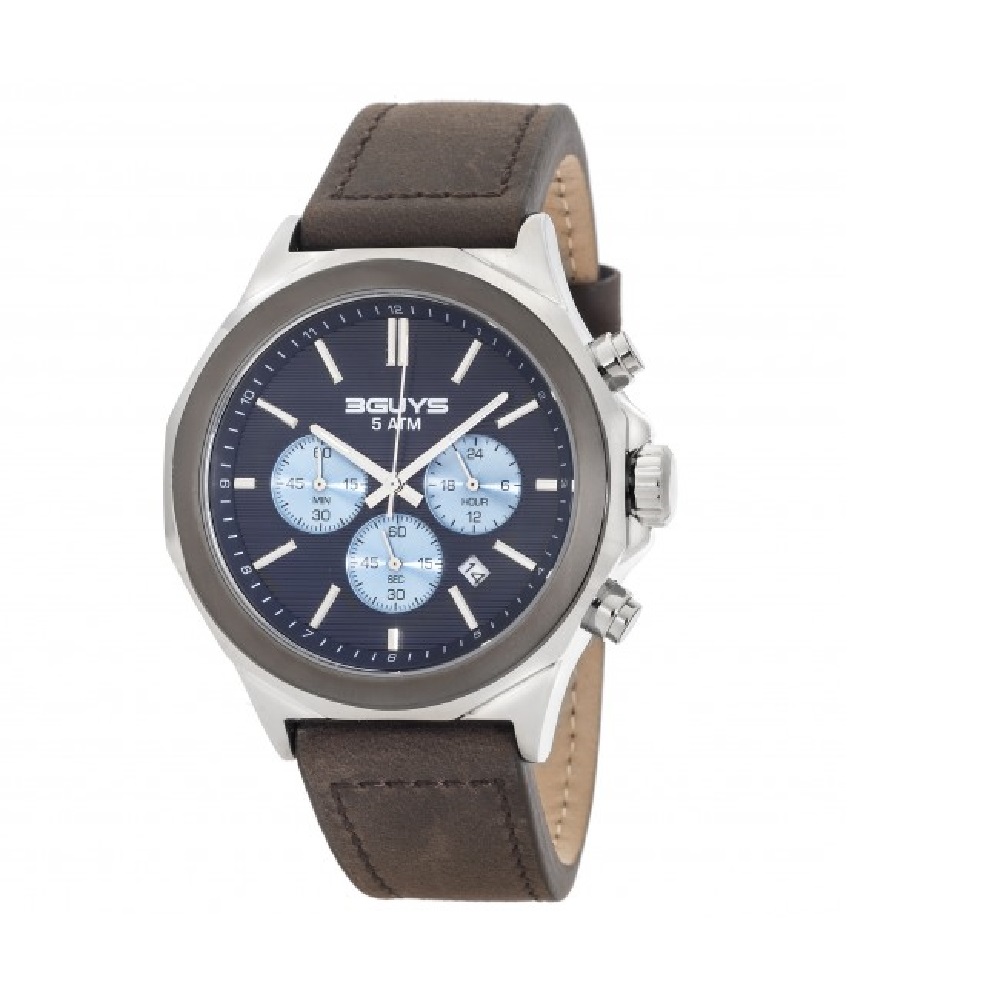 3Guys Men's Chronograph Watch Brown Leather Strap 3G40001