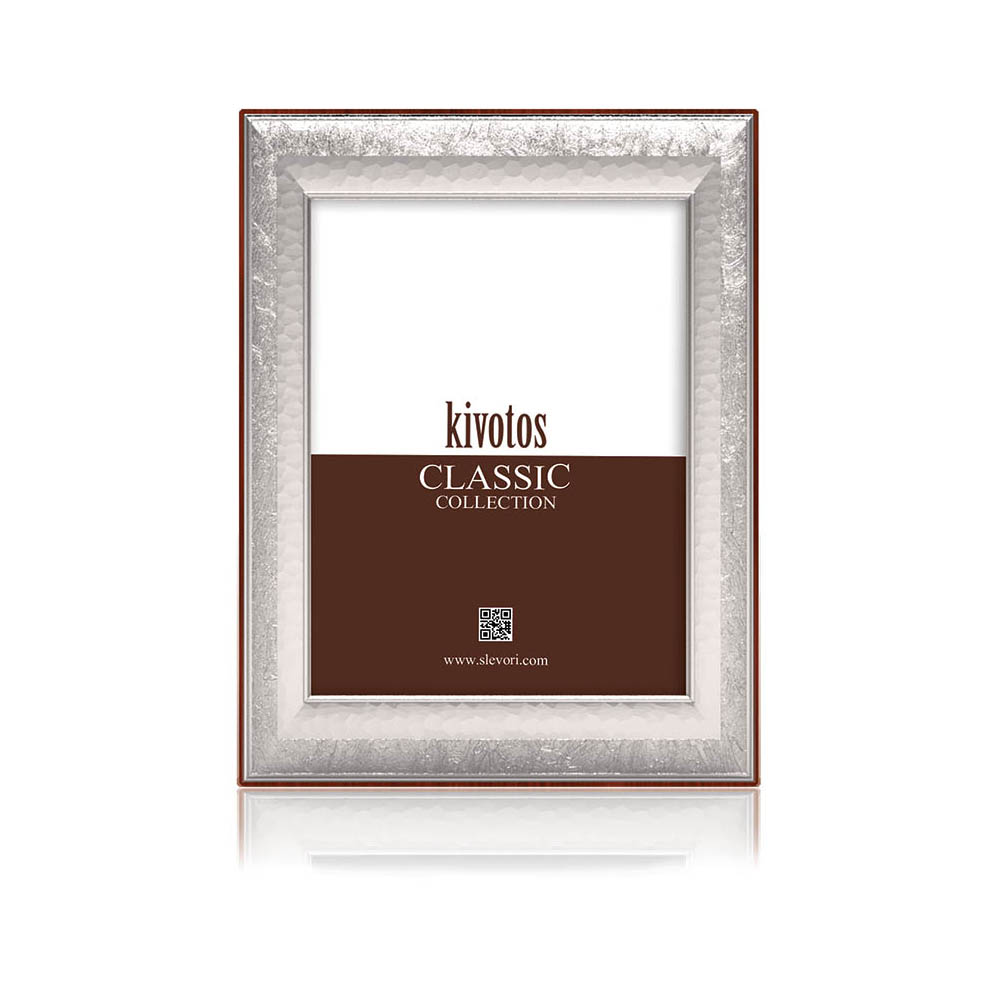 Κορνίζα από ασήμι 925, Slevori, με σαγρέ φινίρισμα και σιρίτι. Η πλάτη είναι ξύλινη σε καφέ χρώμα.