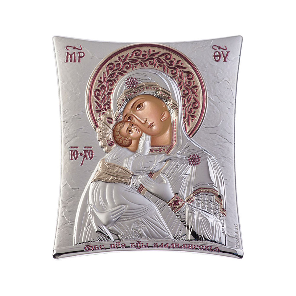 Ασημένια εκκλησιαστική εικόνα, ασύμμετρη, που απεικονίζει την Παναγία Βλαδιμίρκα.