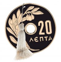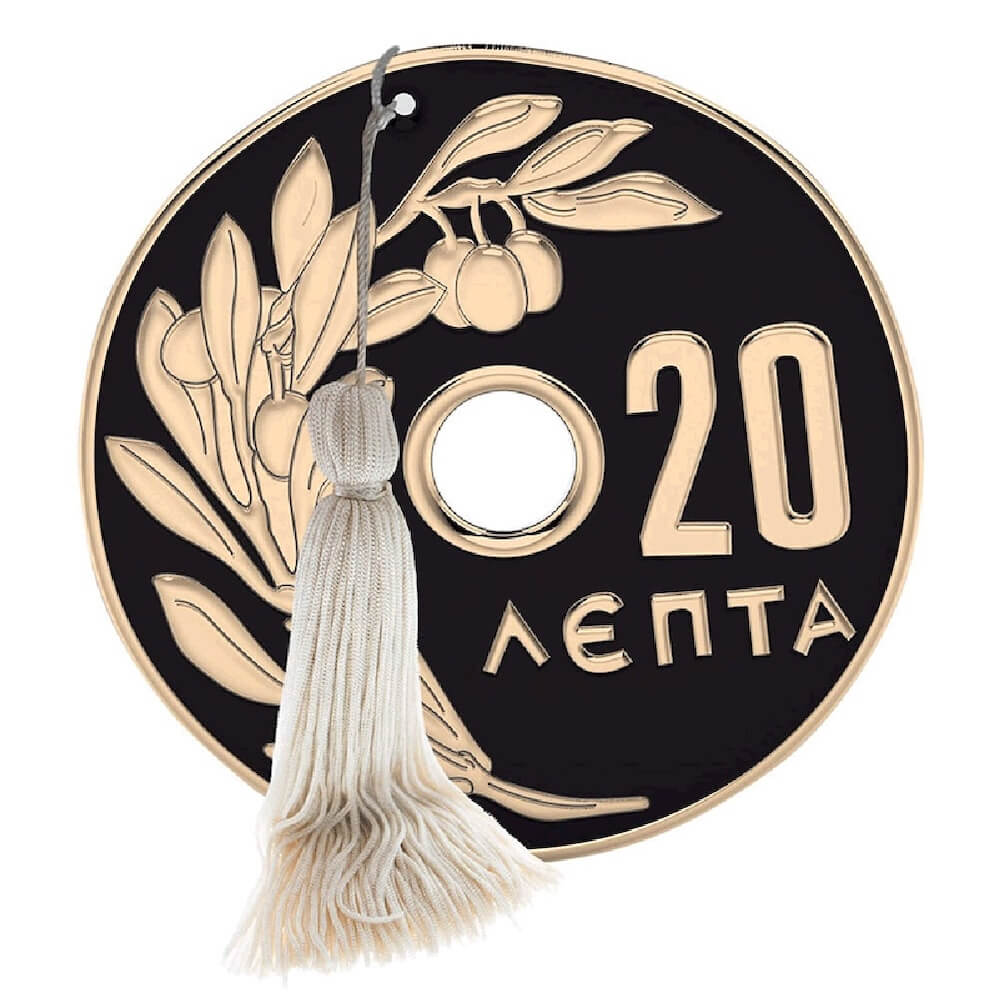 Γούρι επιτραπέζιο σε σχέδιο εικοσάρα - εικοσάλεπτης δραχμής με ένα κλαδί ελιάς. Σύμβολο ευημερίας, δύναμης και ελπίδας. Ιδανική επιλογή είτε για το σπίτι σας είτε για δώρο σε κάποιο αγαπημένο πρόσωπο.
