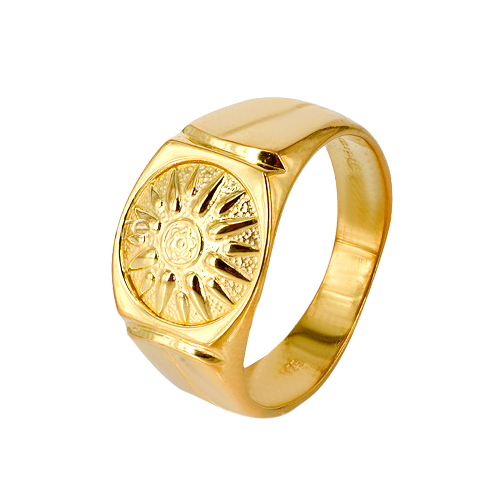 Ασημένιο 925 ανδρικό δαχτυλίδι με κίτρινο επιχρύσωμα σε σχέδιο Ήλιος της Βεργίνας.