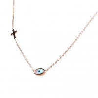 Χρυσό κολιέ 14 Καράτια ματάκι και σταυρό 4620-2RER