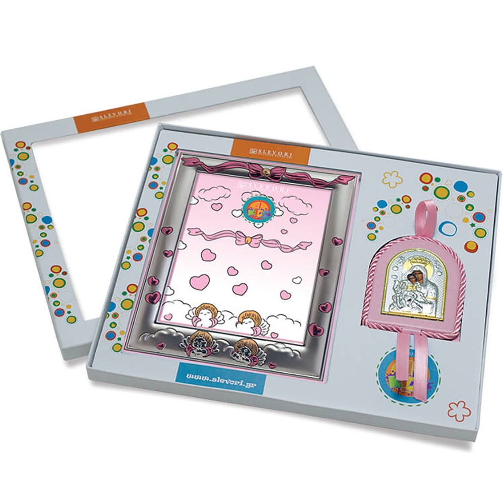 Ασημένιο Παιδικό Σετ με Κορνίζα Αγγελάκια , 9060-912AWM-HG-R