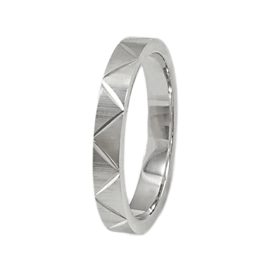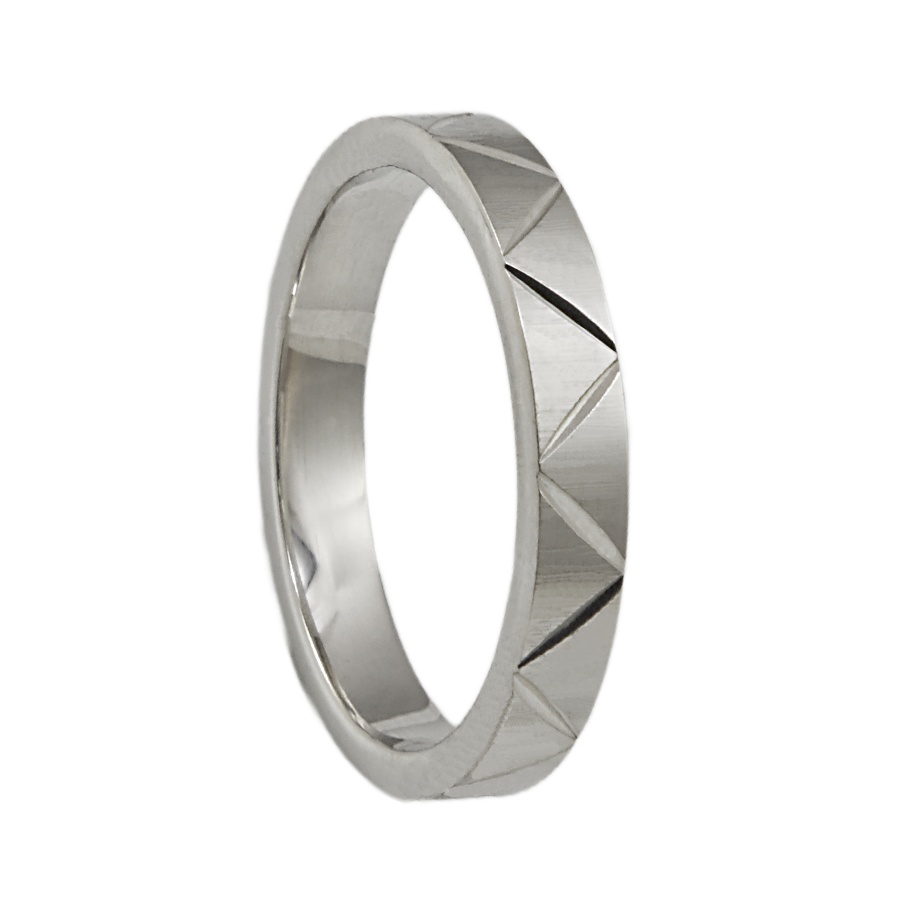Ασημένια βέρα – δαχτυλίδι 925° με πλάτος 3mm σε μοντέρνο σχέδιο με σκαλιστή επιφάνεια πάνω στην οποία σχηματίζονται τριγωνάκια με σατινέ φινίρισμα.