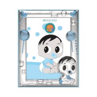 Ασημένια παιδική κορνίζα 925, Slevori, σε σχέδιο Μπέμπης με σιέλ χρώμα.
