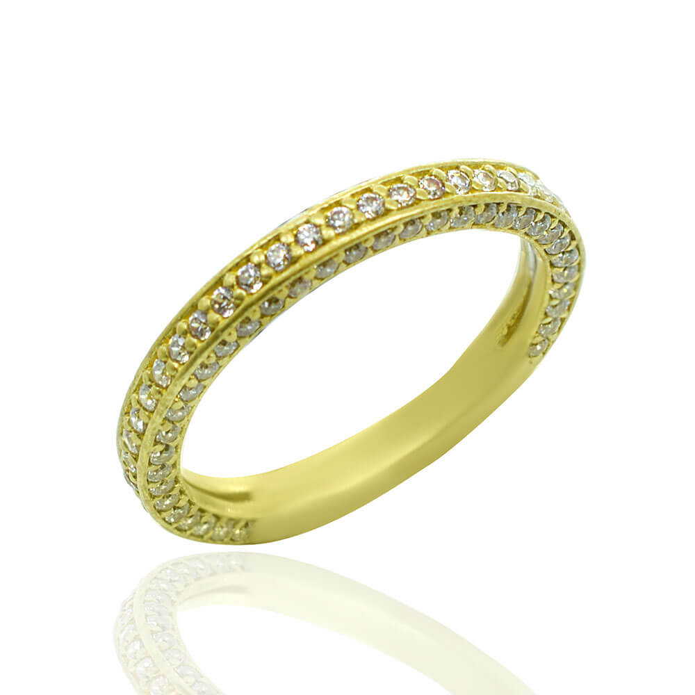 Χρυσό δαχτυλίδι 14 Καρατίων σειρέ, με λευκές πέτρες ζιργκόν Swarovski, περιμετρικά σε όλη την επιφάνεια.