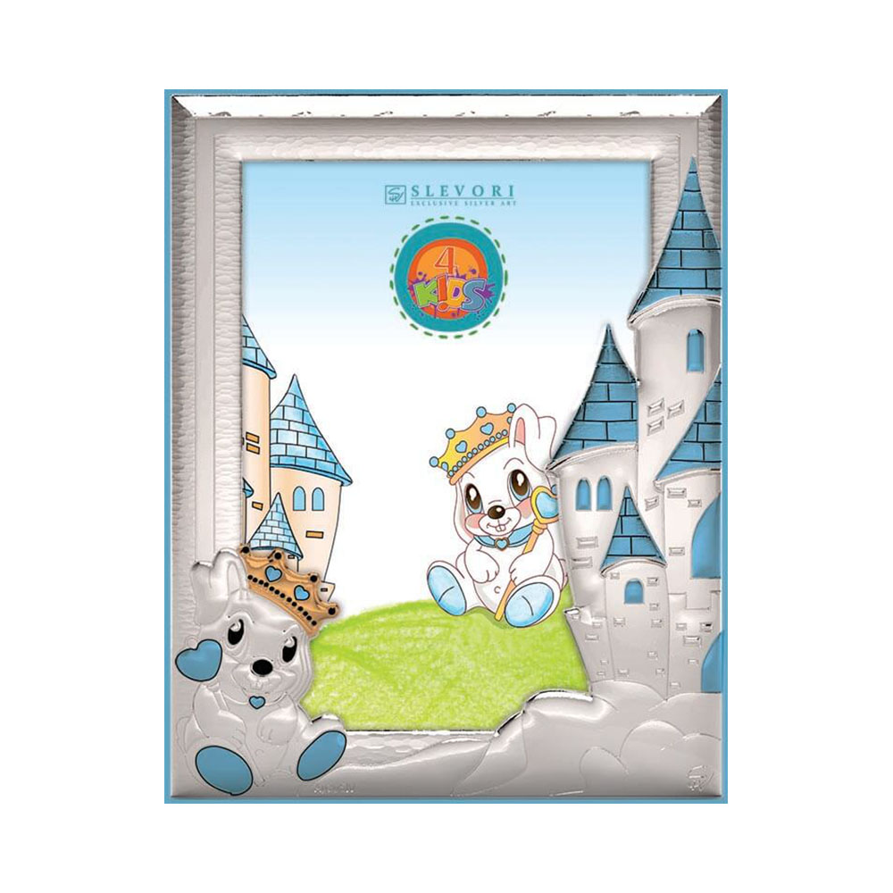 Slevori Ασημένια Παιδική Κορνίζα Με Κάστρο και Λαγουδάκι 13x18 9950-907AWM-B