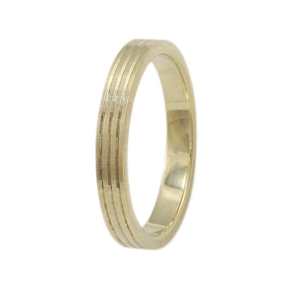 Ασημένια επιχρυσωμένη βέρα – δαχτυλίδι 925° με πλάτος 3mm, ένα σχέδιο με σατινέ φινίρισμα και τρία διακριτικά κανάλια. Μία υπέροχη βέρα για έναν ονειρεμένο γάμο.