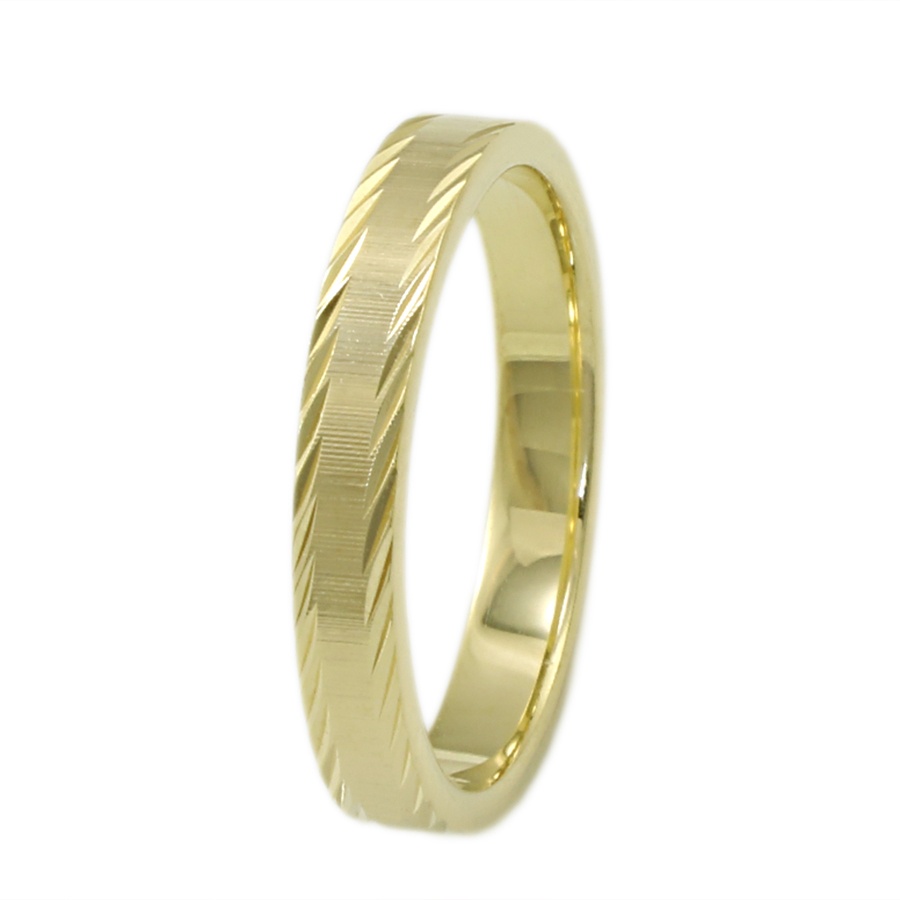 Ασημένια επιχρυσωμένη βέρα γάμου 925° με πλάτος 3mm με πανέμορφο σχέδιο και εκλεπτυσμένη σατινέ επεξεργασία με διαγώνια λουστρέ κοψίματα στα πλαϊνά. Η βέρα αυτή θα σας ξετρελάνει.