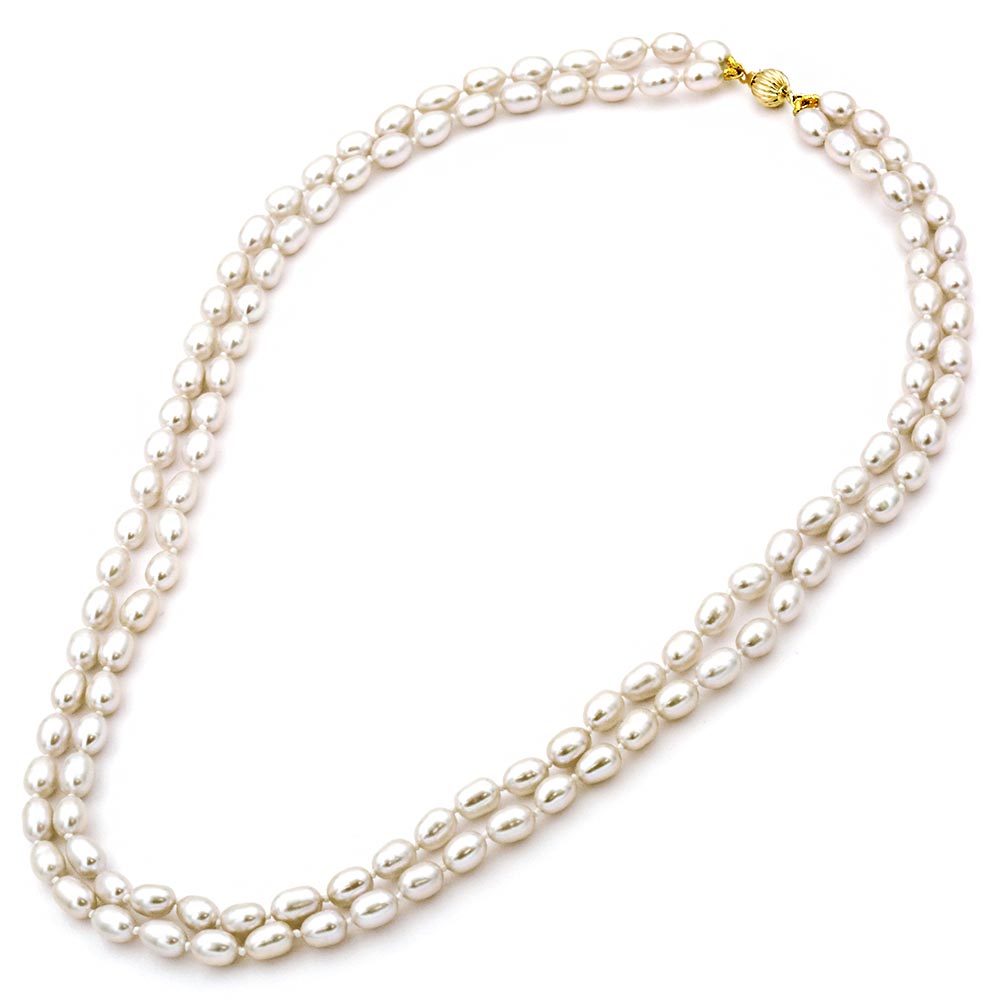 Κολιέ με λευκά μαργαριτάρια γλυκού νερού Fresh Water Pearl διάστασης 5,0 x 7,0 χιλιοστών σε σχήμα Drop (σταγόνα) ποιότητας ΑΑΑ. Στην τέλος του υπάρχει ένα λευκό μαργαριτάρι γλυκού νερού Fresh Water Pearl διάστασης 8,0 x 10,0 χιλιοστών σε σχήμα Drop (σταγόνα) ποιότητας ΑΑΑ. Διαθέτει χρυσή αλυσίδα 14 καρατίων καθώς και χρυσό κούμπωμα ασφαλείας 14 καρατίων. Το συνολικό του μήκος είναι 44 εκατοστά