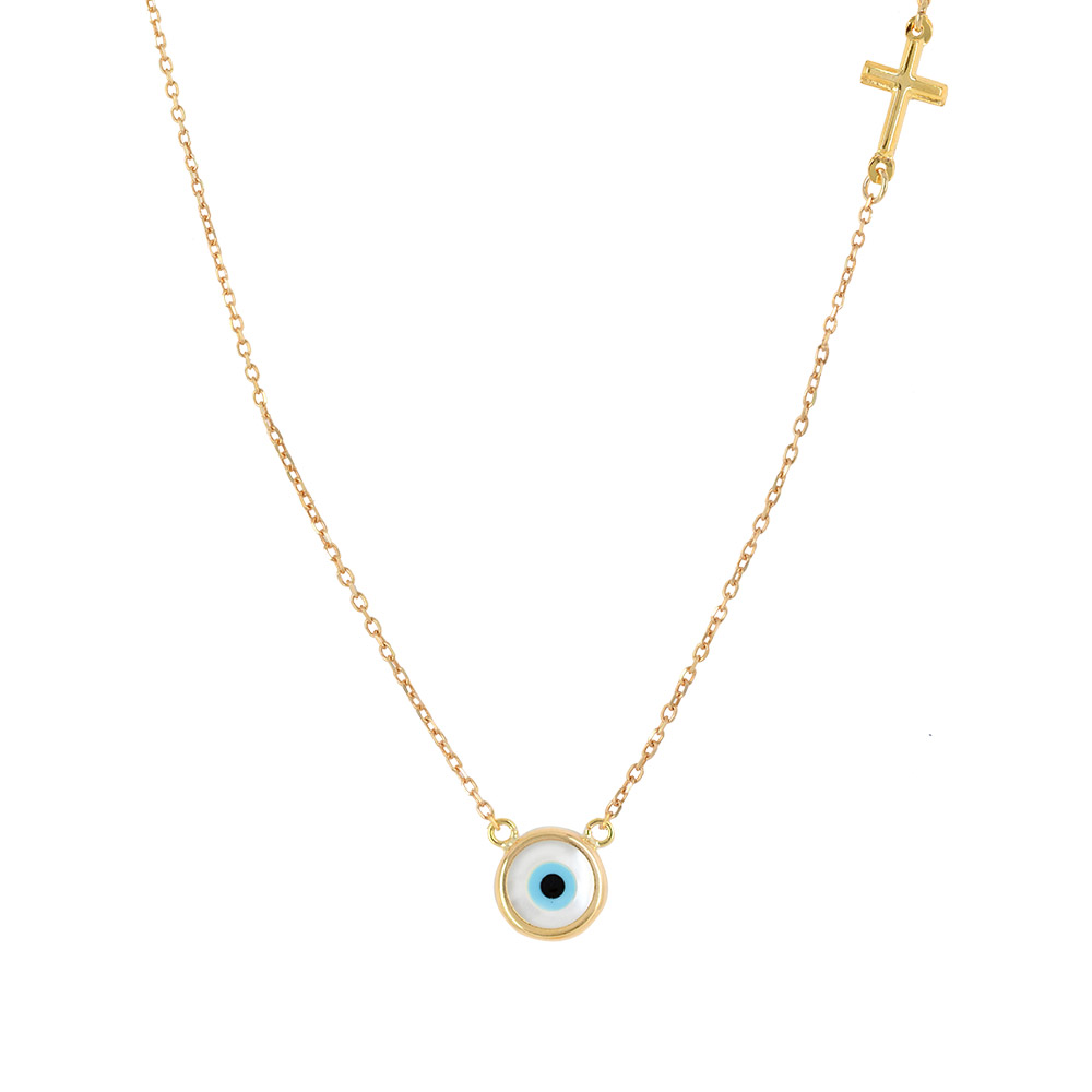 Χρυσό κολιέ 9 Καρατίων με δύο ματάκια λευκά φίλντισι.