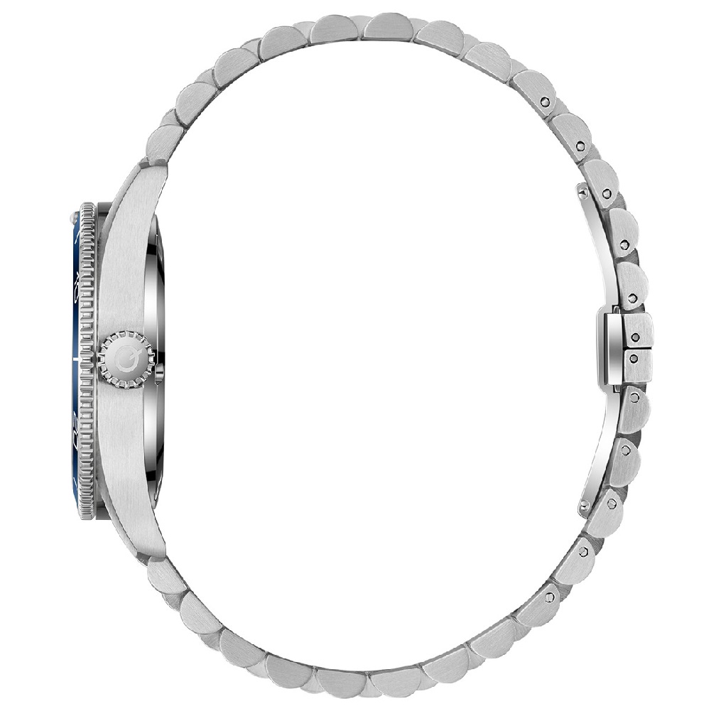 Κάσα: Ασημί ανοξείδωτο ατσάλι με μπλε στεφάνη