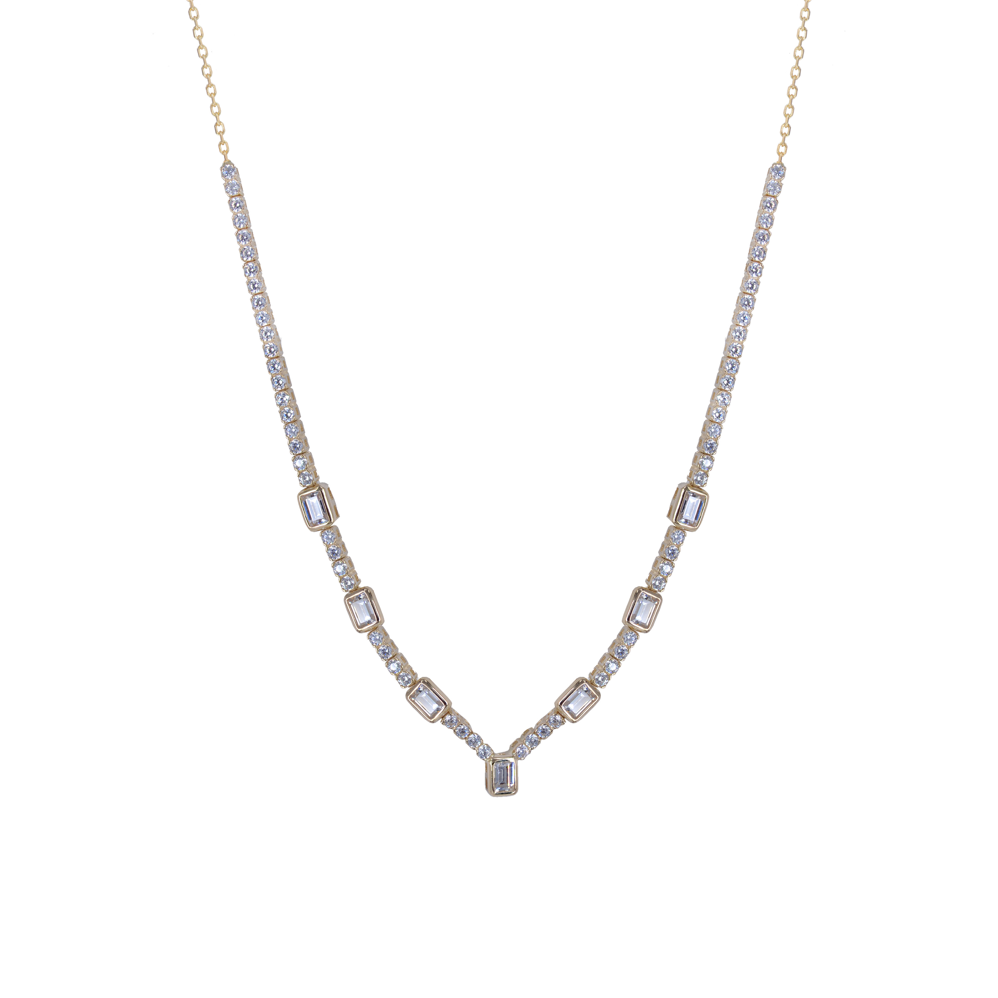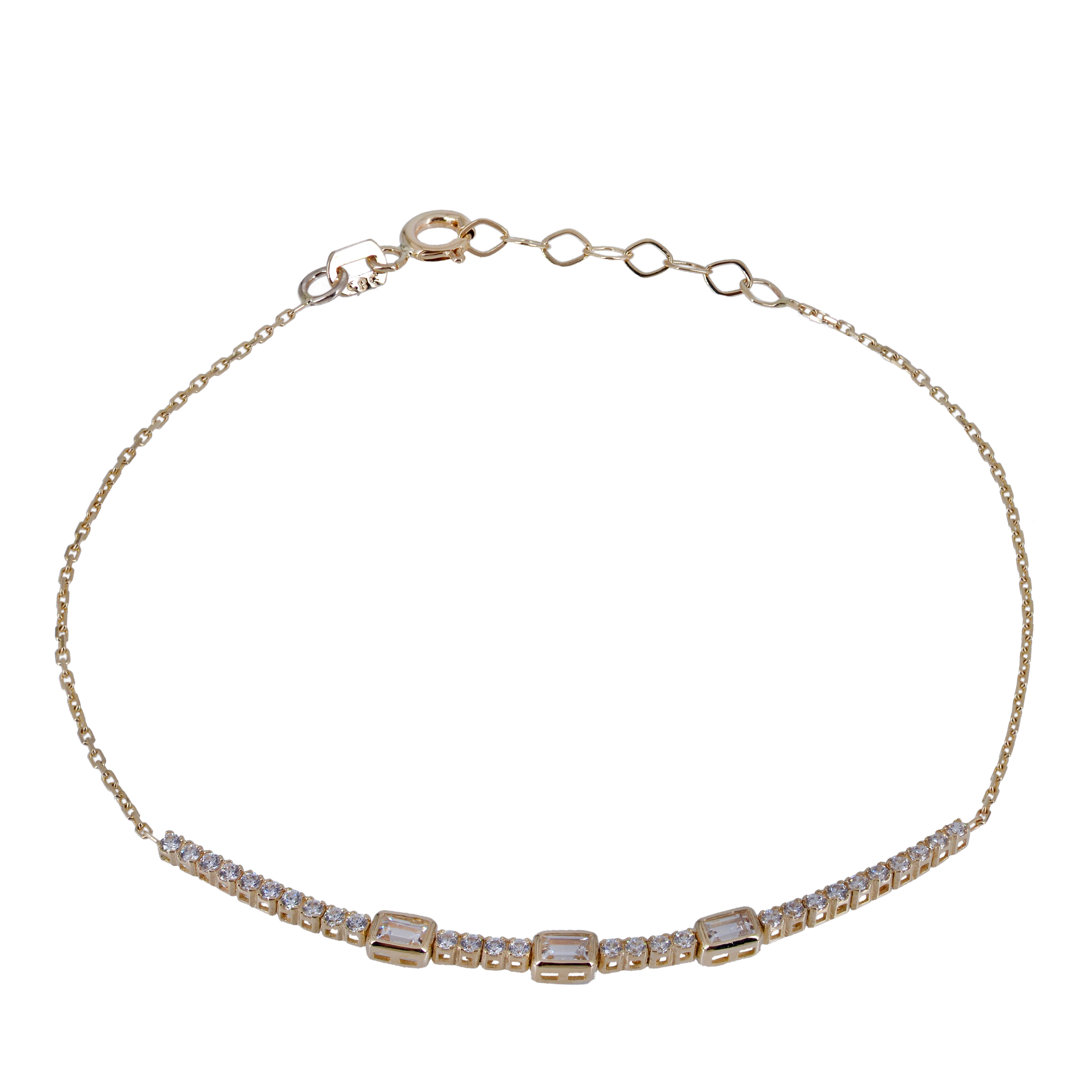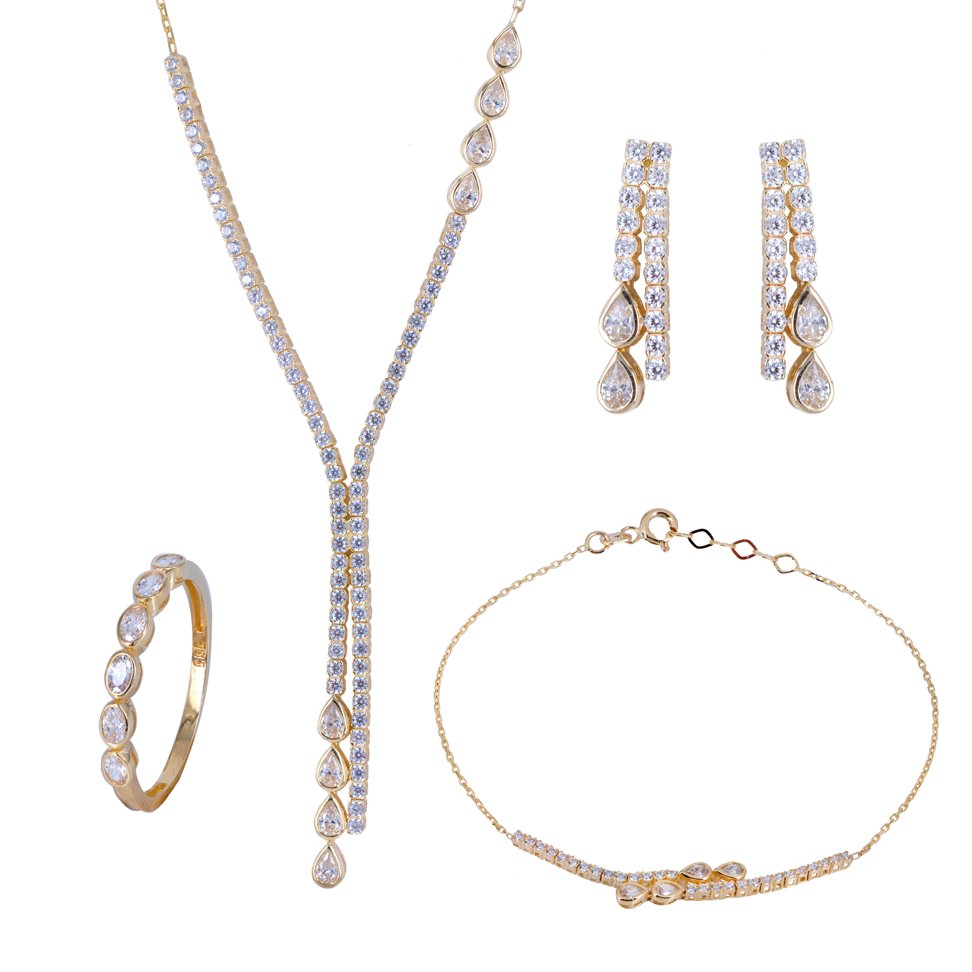 Σετ χρυσό 14 Καρατίων, με ιδιαίτερο μοντέρνο σχέδιο από μονή σειρά με ζιργκόν Swarovski με ενδιάμεσες πέτρες ζιργκόν Swarovski σε ορθογώνιο σχήμα .