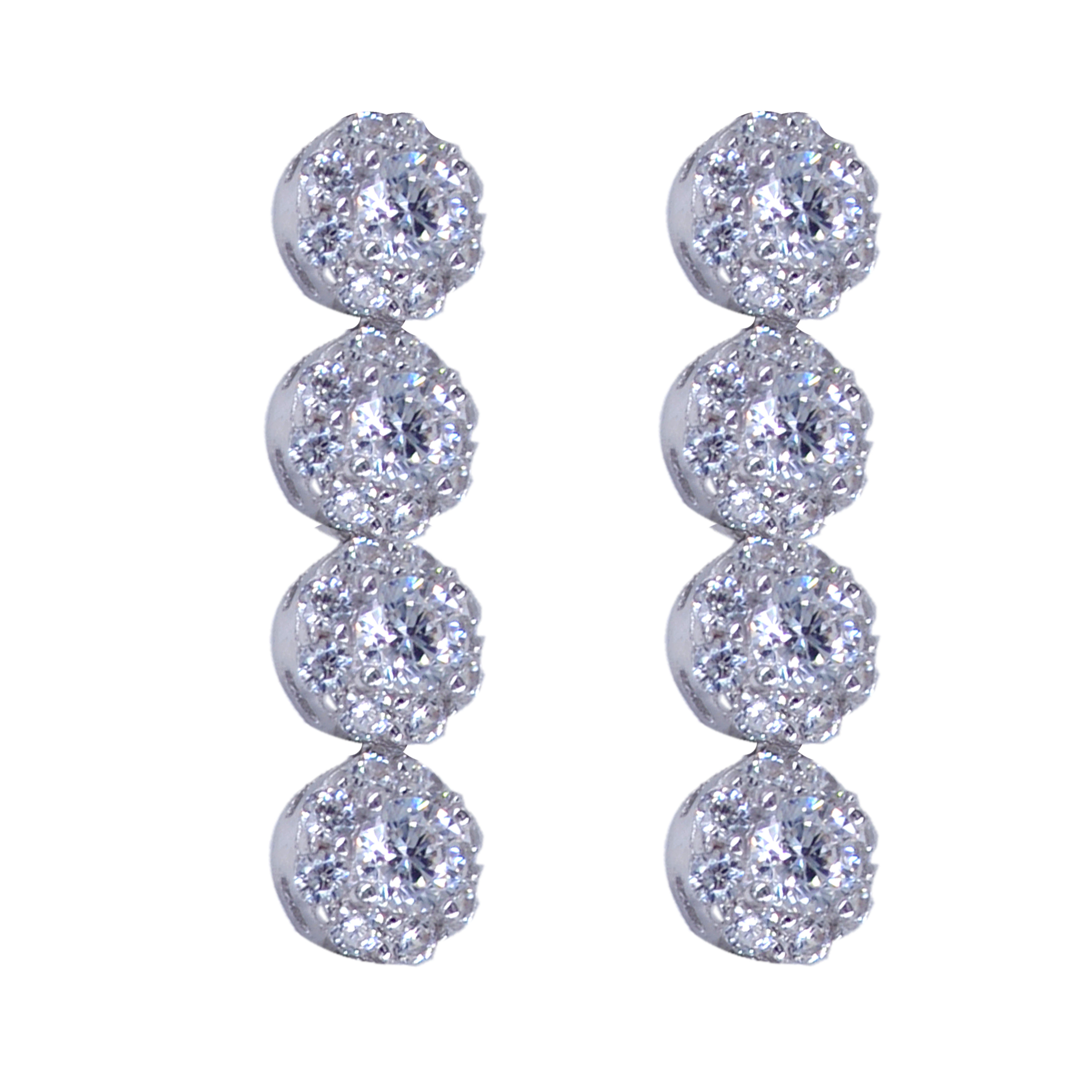 Σετ λευκόχρυσο 14 Καρατίων, με ιδιαίτερο μοντέρνο σχέδιο με μονή σειρά ροζέτα πέτρες ζιργκόν Swarovski.