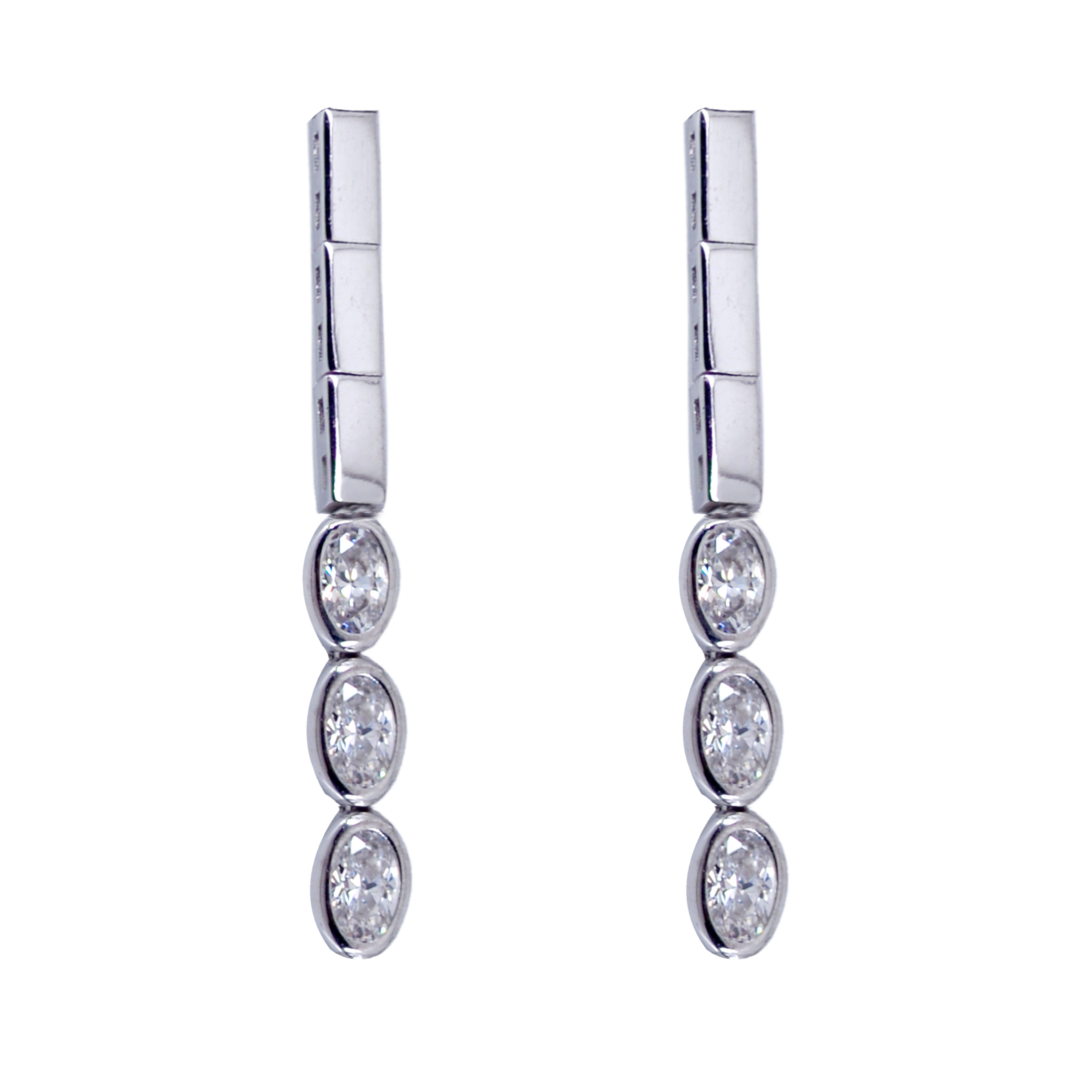 Σετ λευκόχρυσο 14 Καρατίων, με ιδιαίτερο μοντέρνο σχέδιο με ορθογώνια στοιχεία και με πέτρες ζιργκόν Swarovski σε οβάλ σχήμα.