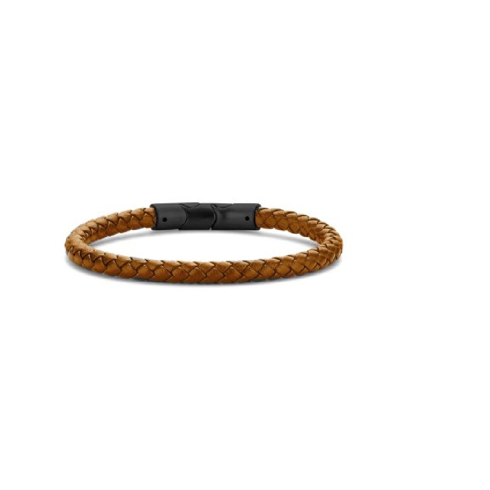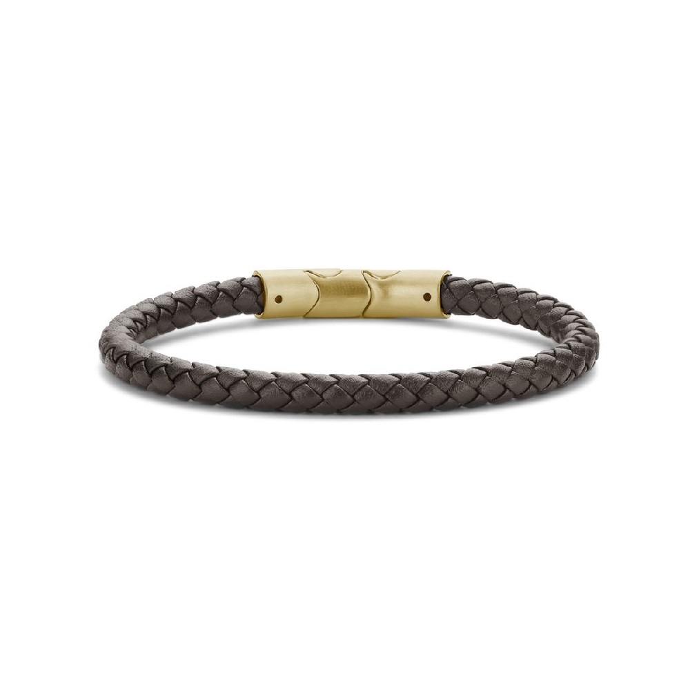 Ανδρικό δερμάτινο πλεκτό βραχιόλι κατασκευασμένο με ακρίβεια, αυτό το βραχιόλι από δέρμα και ατσάλι προσθέτει μια τολμηρή πινελιά στην εμφάνισή σας.