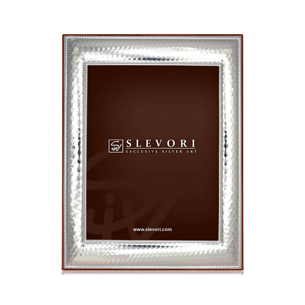 Κορνίζα από ασήμι 925, Slevori, με σφυρήλατο φινίρισμα και ξύλινη πλάτη σε καφέ χρώμα.