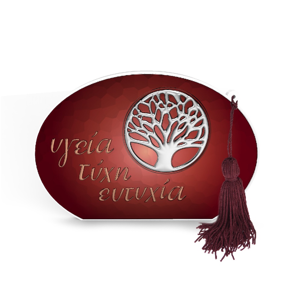Επιτραπέζιο γούρι με το δέντρο της ζωής σε μπλε χρώμα και λευκή πλάτη από ξύλο. Επάνω αναγράφεται η ευχή " Υγεία - Τύχη - Ευτυχία". Δεν υπάρχουν πιο ωραίες ευχές για να στολίζουν το σπίτι σας ή το σπίτι των αγαπημένων σας προσώπων.