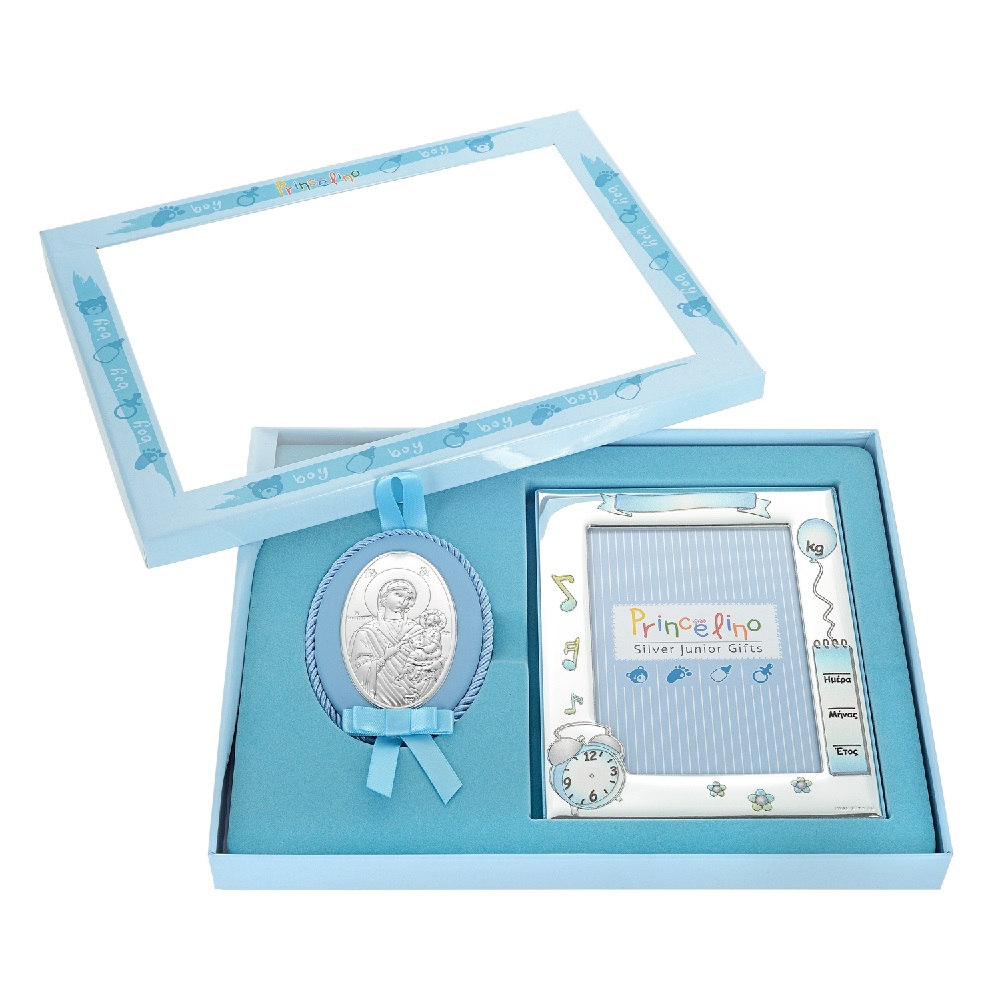 Ασημένιο Παιδικό σετ με Κορνίζα Γέννησης 6x9 9055-MA/S145-2C